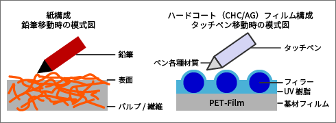 文教用のタブレットPCをはじめ、タッチペンで画面に文字を書くデバイスが普及しています。書き心地に違和感が生じないよう、紙に鉛筆で文字を筆記する際の抵抗や振動に着目して開発しました。